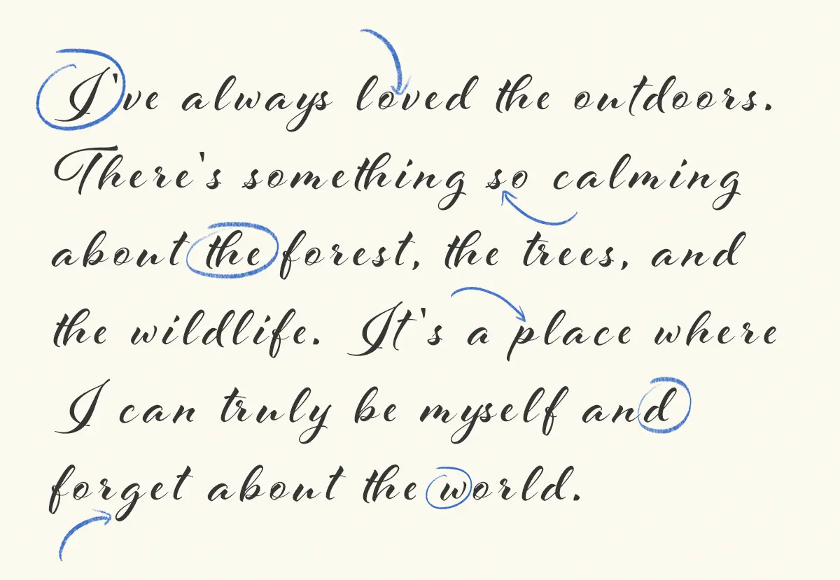 Sociability and communication: A right slant and round, open letter shapes suggest sociability, emotional responsiveness, and friendliness.